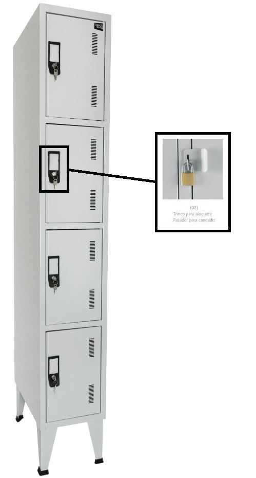 Cacifo Metálico Simples 4 Cacifos 1900x300x500 mm Cadeado Simples