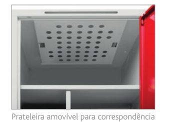Armário vestiário simples modelo Bombeiros. Equipado com divisória para sujos e limpos, prateleira superior e inferior, varão para cruzetas, cabides, suporte para cinturão e abertura para correspondência com prateleira amovível.