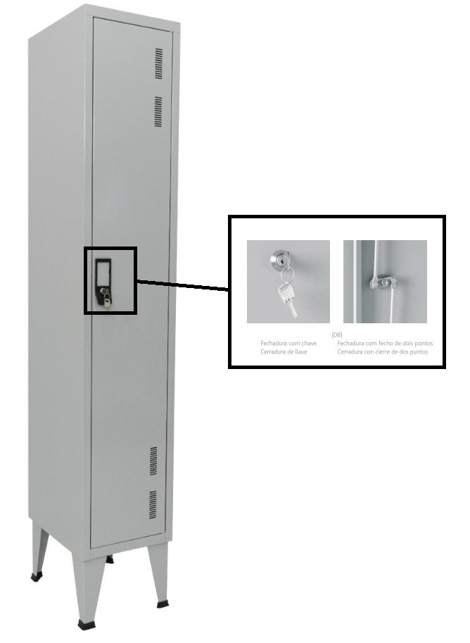 Tipo de Fechadura: Fechadura de Chave com Fecho de dois Pontos