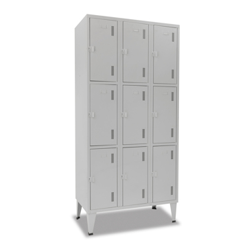Cacifos Metálicos Triplo Cinza 9 Cacifos 1900x900x500mm Cadeado Simples