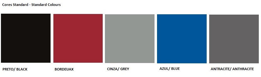 Cores Disponíveis: Preto/ Bordeaux/ Cinza/ Azul/ Antracite