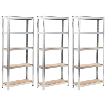 Prateleiras de Arrumação 3 pcs Prateado 75x30x172 cm Aço e Mdf