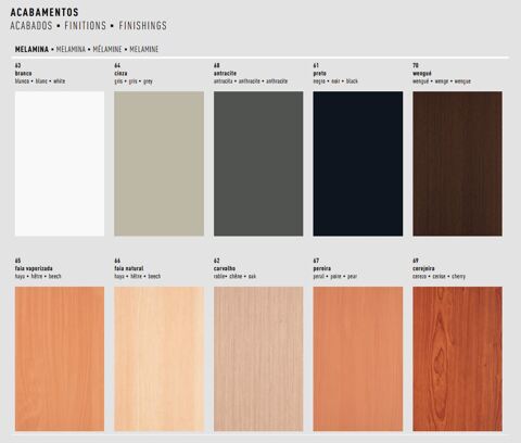 Acabamento do Tampo: Melamina Cinza, Pereira, Faia, Wengué, Branco, Cerejeira, Preto ou Antracite