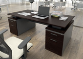 Secretária Escritório 1800x1600mm em L Delta  com Armário Lateral em Cerejeira Chocolate