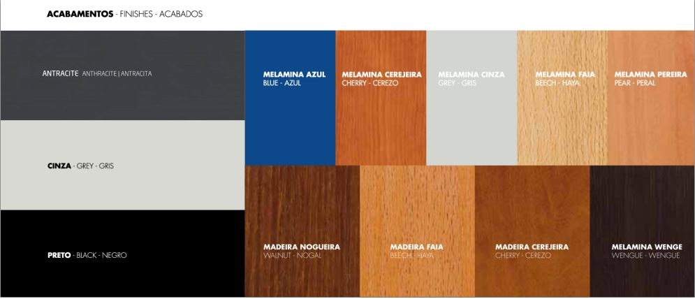 Tampo: Melamina 01-Cinza, 02-Pereira, 03-Cerejeira, 04-Faia, 05-Azul ou 16-Wengué