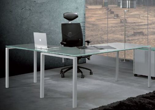 Secretárias de Escritório 1400x800x740mm Kuatro Vidro C/ Alonga