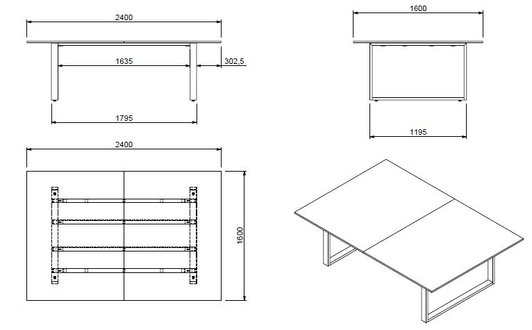 Medidas: (LxPxA) 2000x800x740mm (com Armário 2000x1600x740mm)